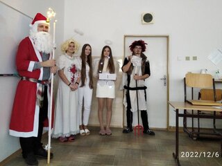 Mikuláš navštívil triedy, vypočul si básničky, pesničky. Anjeli odmenili poslušných žiakov a čert potrestal neposlušných.