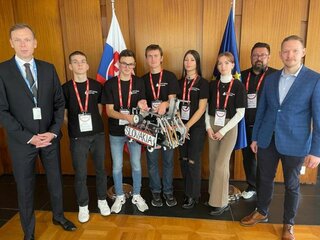 Preto sme nemohli vynechať návštevu permanentnej misie Slovenska pri OSN. Robot Pavol zaujal aj veľvyslanca Dušana Matulaya, ktorý príde slovenský team podporiť aj na súťaž.